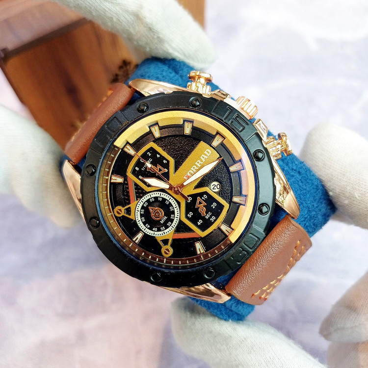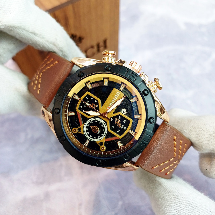 ساعت عقربه ای انالوگ برند FORRAD اقتصادی موتور با کیفیت تاریخ شمار فعال چرمی در حد شست وشو دست در برابر آب مقاوم است به همراه جعبه ی ام دی اف
