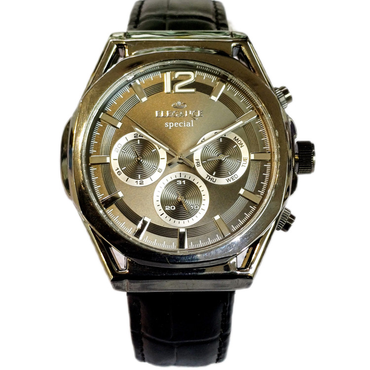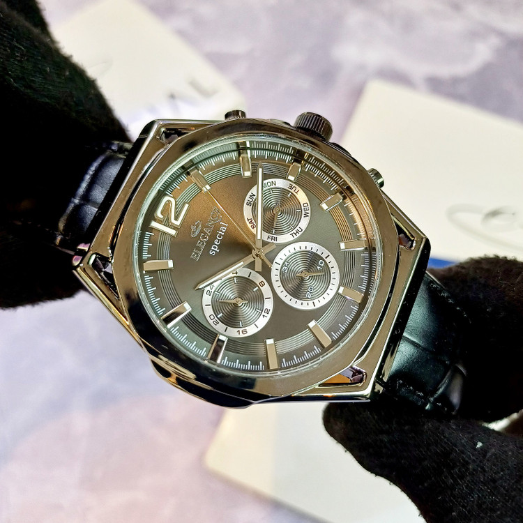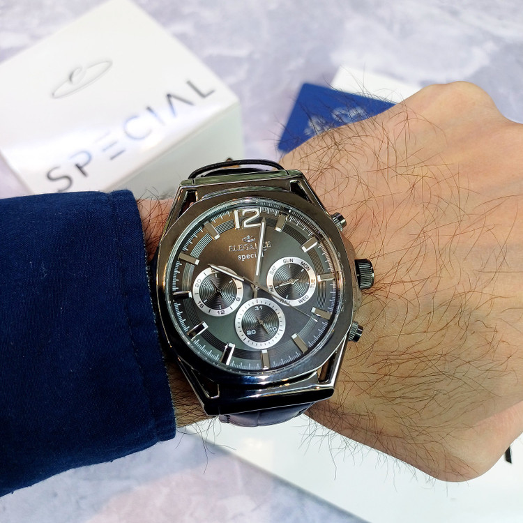ساعت عقربه ای آنالوگ برند ELEGANCE SPECIAL سه موتور فول تایم موتور میوتای ژاپن بند چرم درجه یک به همراه دوسال گارانتی موتور