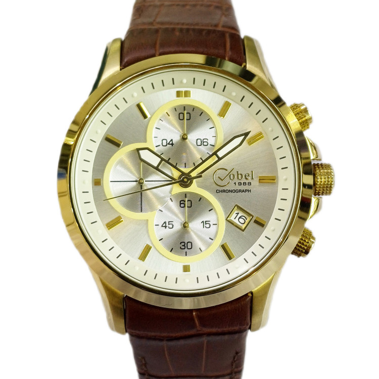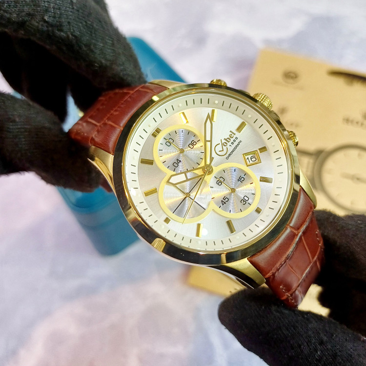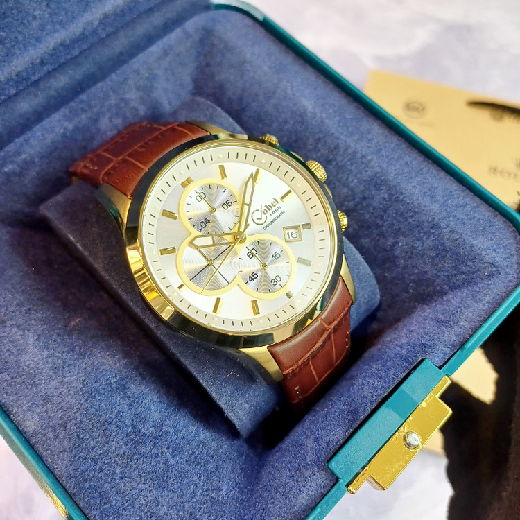 ساعت عقربه ای آنالوگ برند COBEL موتور میوتای ژاپن سه موتور کرنوگراف بند چرم درجه یک به WATERRESISTANT3ATMبه همراه گارانتی دوساله موتور