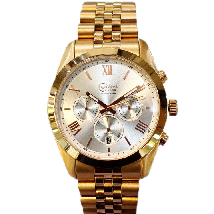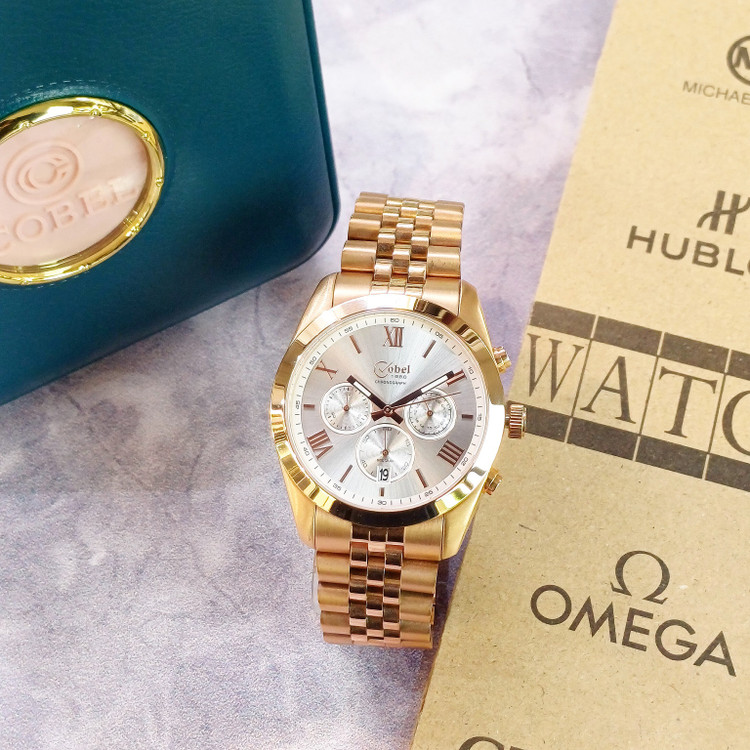 ساعت عقربه ای آنالوگ برند COBEL موتور میوتای ژاپن سه موتور کرنوگراف فول استیل 316Lرنگ ثابت به WATERRESISTANT3ATMبه همراه گارانتی دوساله موتور