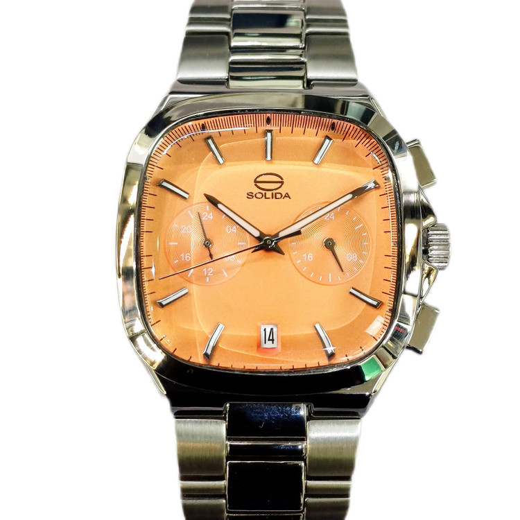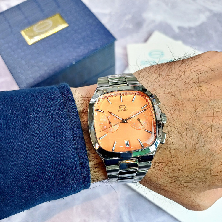 توضیحات: ساعت عقربه ای آنالوگ برند SOLIDAموتور میوتای ژاپن سه موتور دوئل تایم فول استیل 316L رنگ ثابتWATER RESISTANTبه همراه دوسال گارانتی موتور