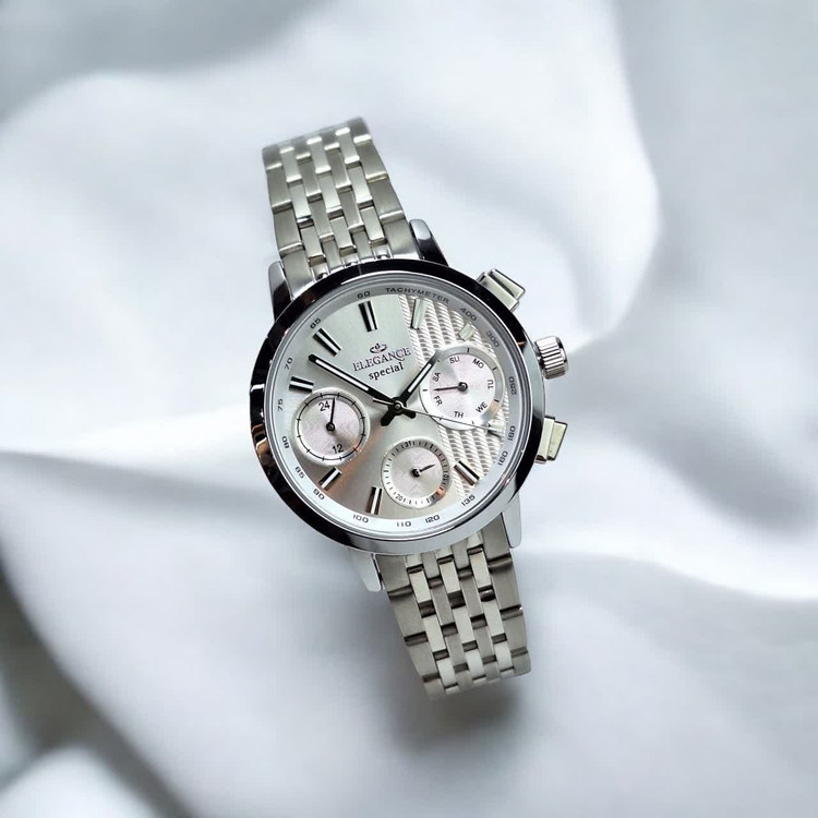 ساعت ست عقربه ای آنالوگ برند ELEGANCE SPECIALموتور میوتای ژاپن سه موتور فول تایم فول استیل 316L رنگ ثابت به همراه گارانتی دوساله موتور