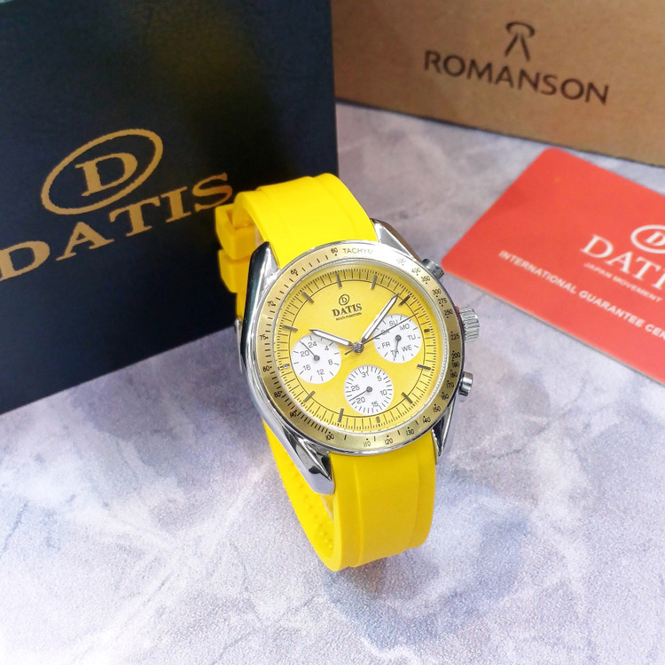 ساعت عقربه ای آنالوگ برند داتیس DATISسه موتور فول تایم موتور میوتای ژاپن بند رابر درجه یک به همراه گارانتی کارت دوساله موتور