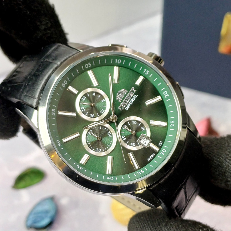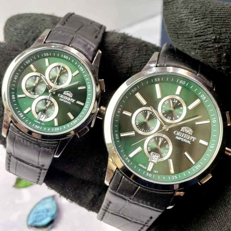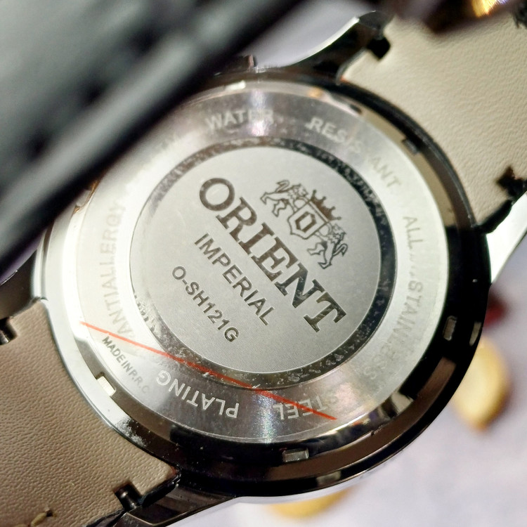 ساعت ست عقربه ای آنالوگ برند اورینت امپریال ORIENT IMPERIAL سه موتور فول تایم موتور میوتای ژاپن بند چرم درجه یک به همراه ثبت مالکیت به نام خریدار