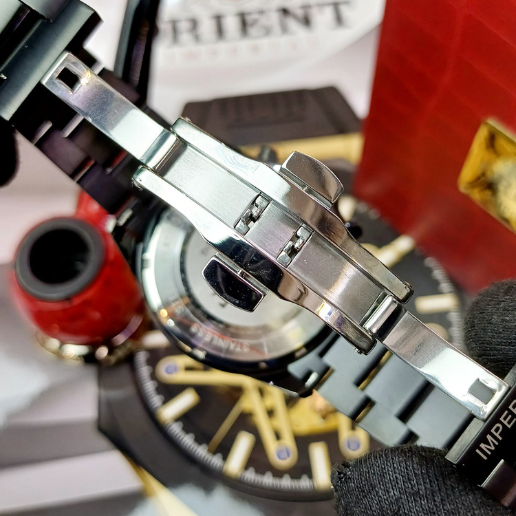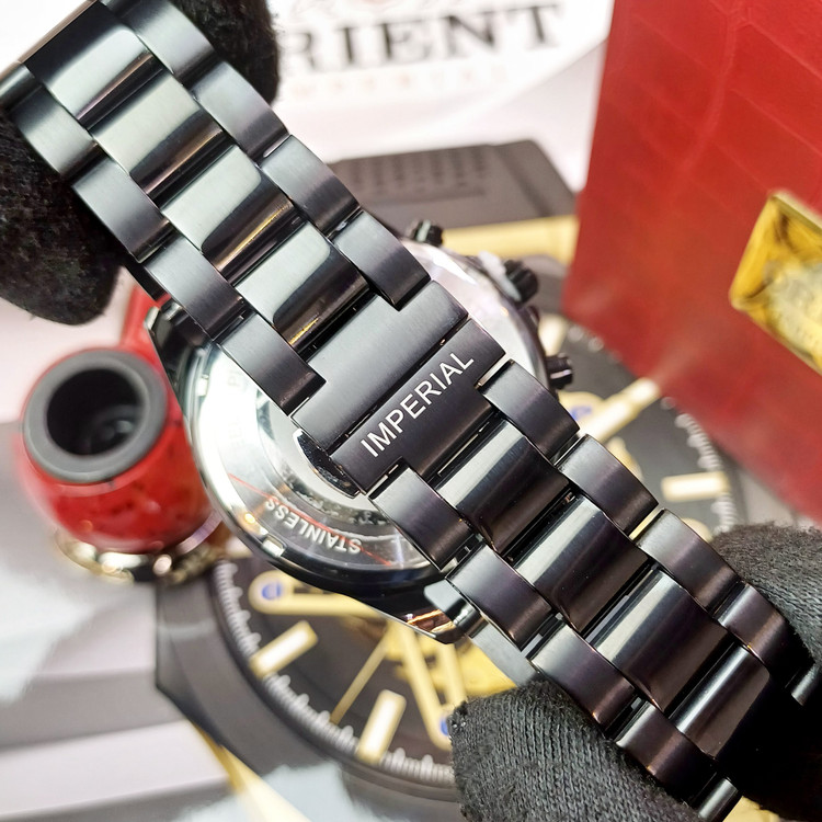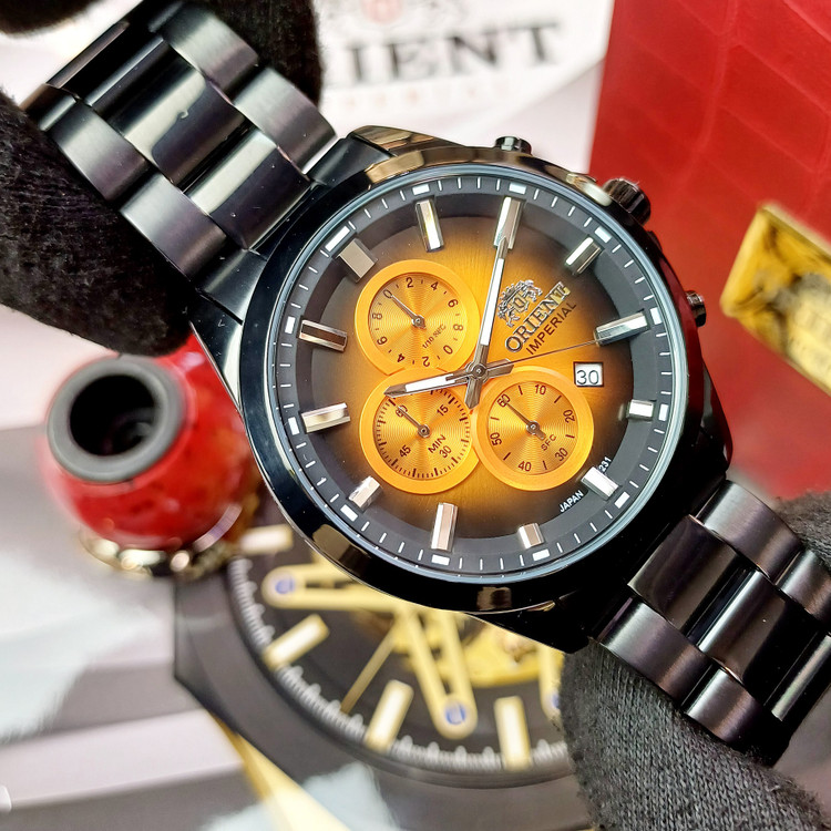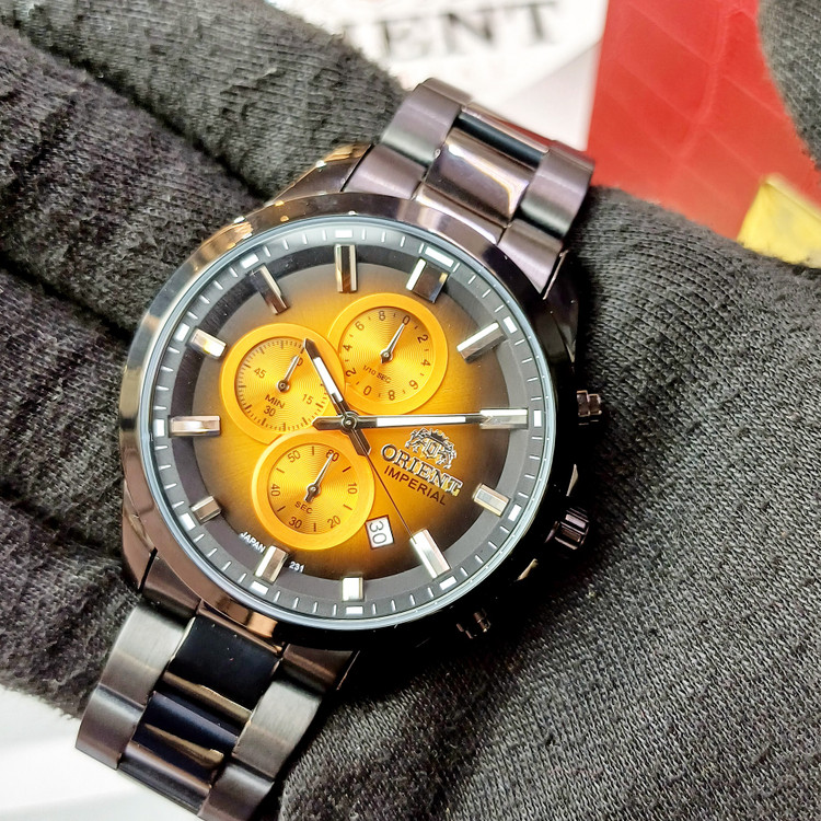 ساعت عقربه ای آنالوگ برند اورینت امپریال ORIENT IMPERIALموتورمیوتای ژاپن کرنوگراف فول استیل 316Lرنگ ثابت به همراه ثبت مالکیت