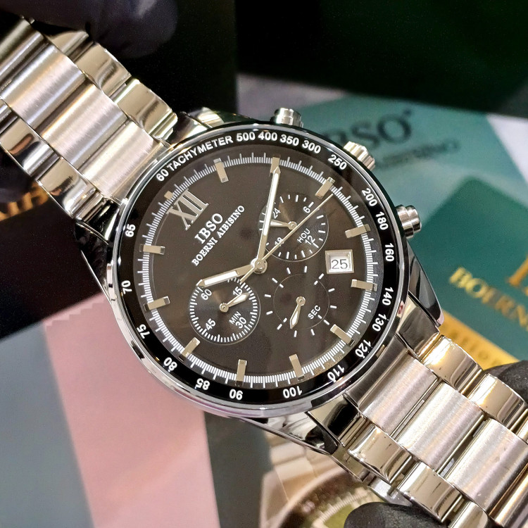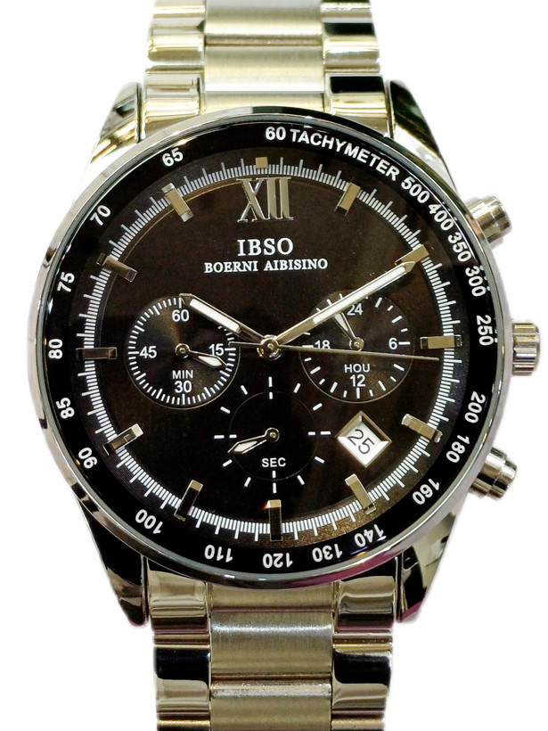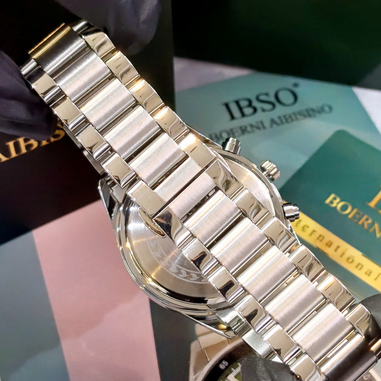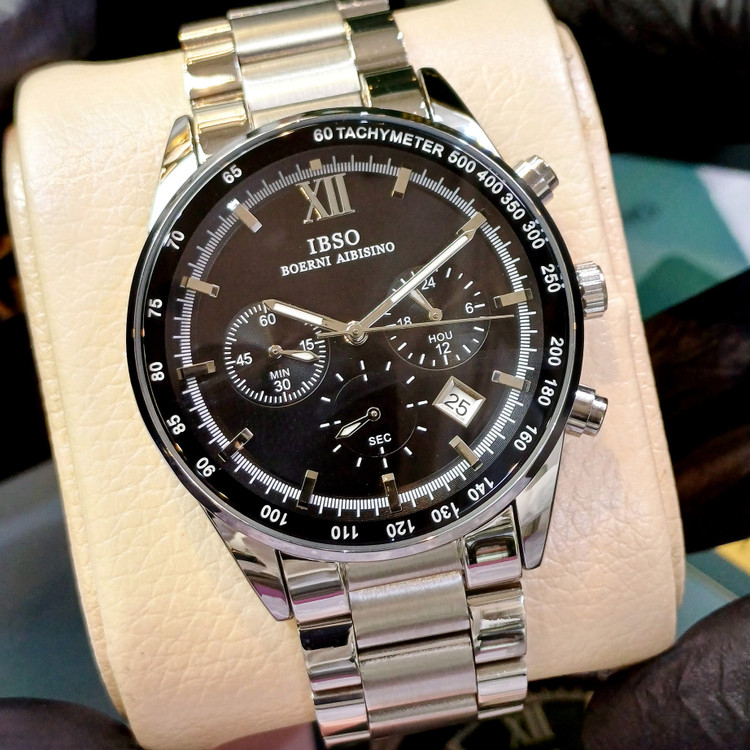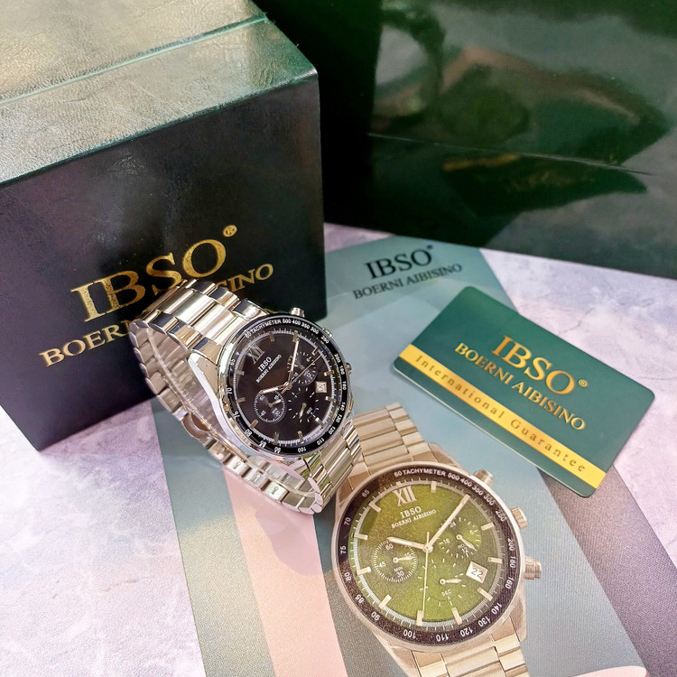 ساعت عقربه ای آنالوگ برند ایبسوIBSOموتور میوتای ژاپن کرنوگراف فول استیل 316Lرنگ ثابت به همراه دوسال گارانتی موتور