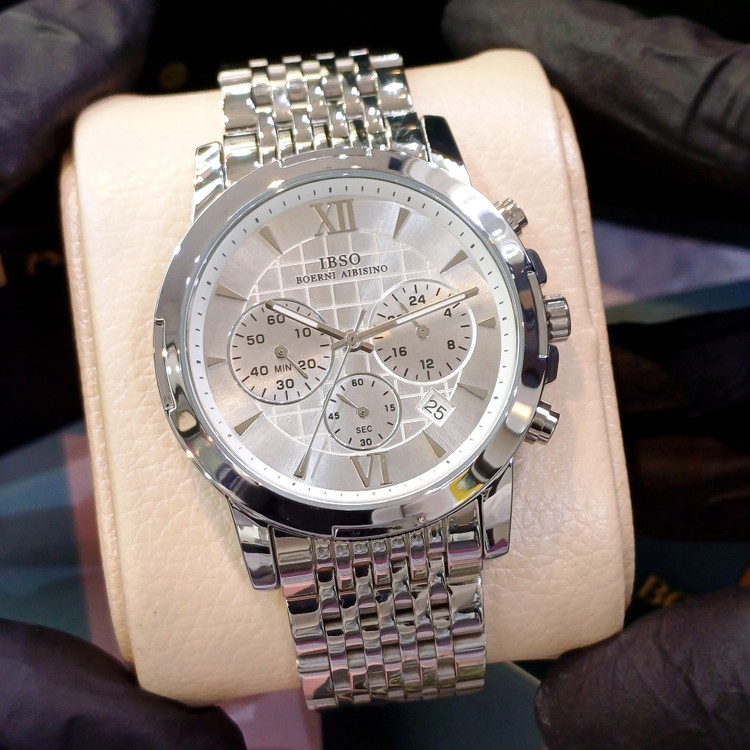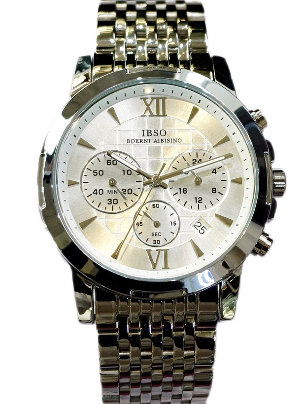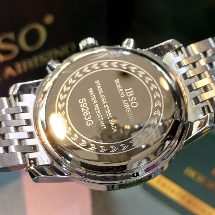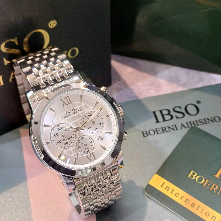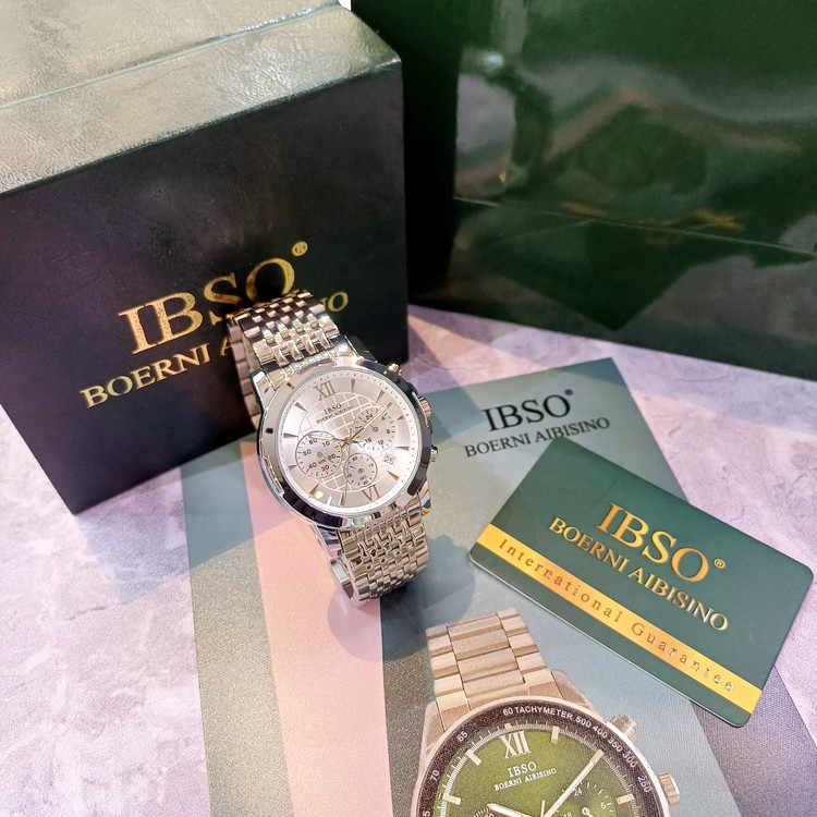 توضیحات: ساعت عقربه ای آنالوگ برند ایبسوIBSOموتور میوتای ژاپن کرنوگراف فول استیل 316Lرنگ ثابت به همراه دوسال گارانتی موتور