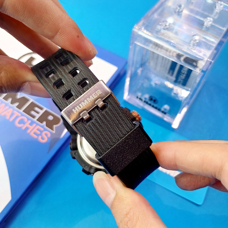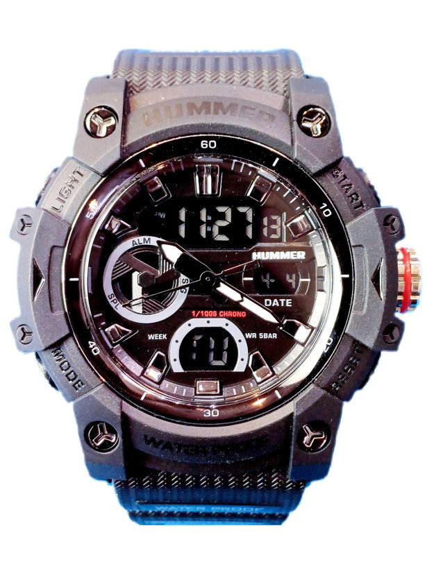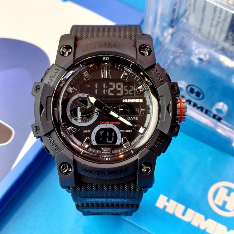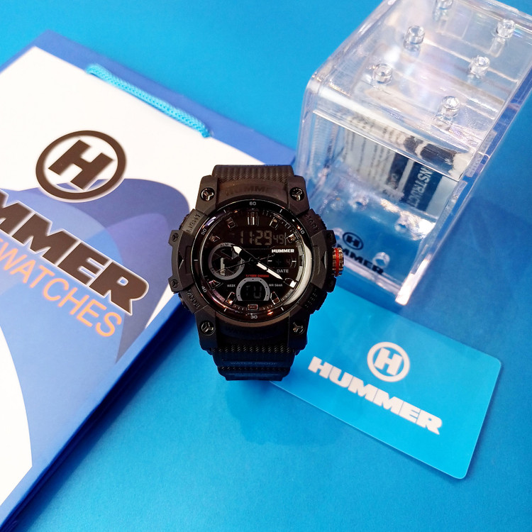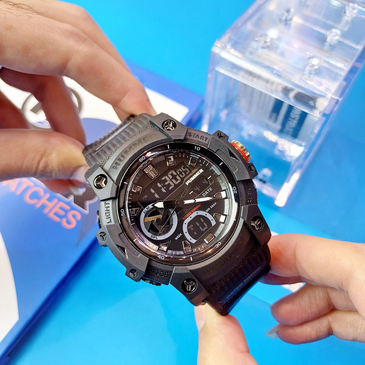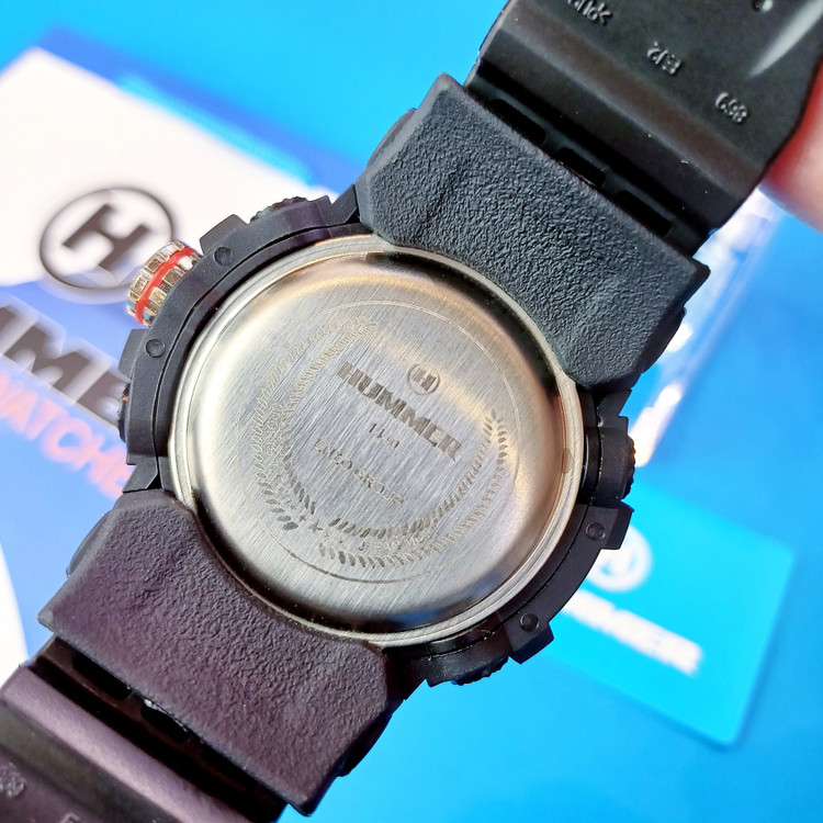 ساعت عقربه ای دیجینال دوزمانه برند هامرHUMMER موتور میوتای ژاپن بند پیوسیلیکون درجه یک ضدآب کامل به همراه گارانتی کارت دوساله موتور