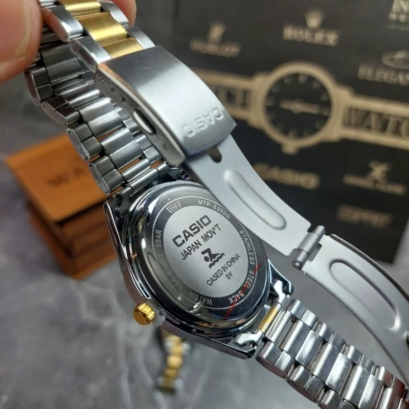 ست ساعت زنانه و مردانه برند کاسیو با طراحی کلاسیک و ترکیب رنگ نقرهای–طلایی، انتخابی شیک و ماندگار برای زوجهاییست که به ظرافت و هماهنگی اهمیت میدهند. این مدل با صفحه مشکی و بند استیل، هم در استایل رسمی و هم روزمره قابل استفاده است. 💞