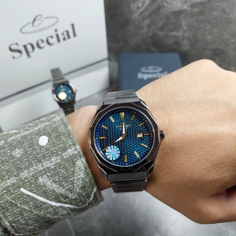 ست ساعت مچی زنانه و مردانه Elegance Special با صفحهی آبی طرحدار، نشانگر تاریخ و بند فلزی مقاوم؛ انتخابی خاص و شیک برای زوجهای خوشسلیقه، مناسب هدیه عاشقانه و استفادهی روزمره با جلوهی لوکس و ماندگار. 🤩