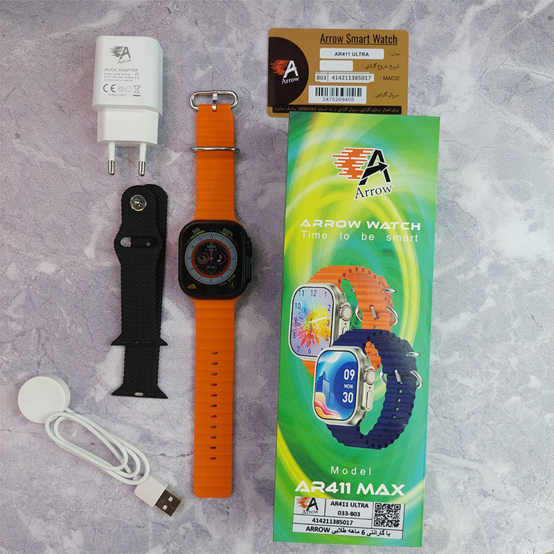 ساعت هوشمند ارو مدل AR411 ULTRA دارای قابلیت مکالمه مستقیم، بند سیلیکونی