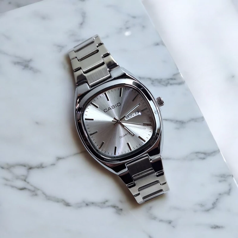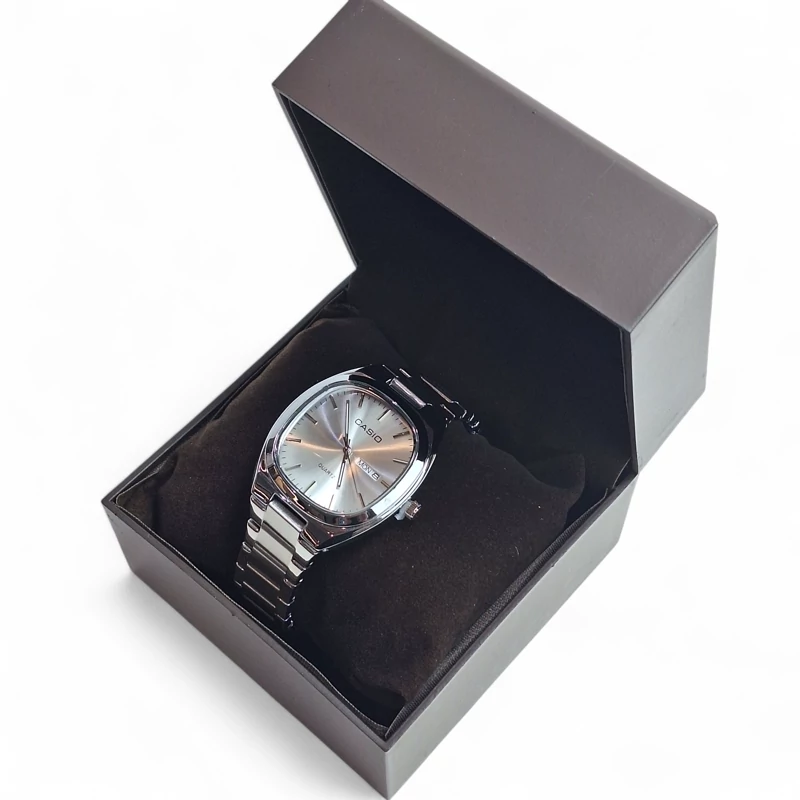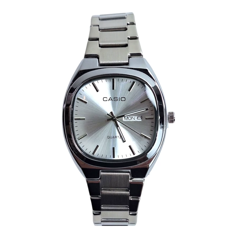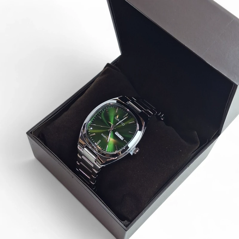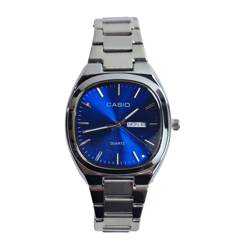 🔶ساعت کاسیو مردانه دارای تقویم روز شمار ایام هفته رنگ بدنه نقره ای رنگ صفحه: آبی تیفانی،آبی کاربنی، سبز، سفید جنس قاب:alloy جنس بند :استیل شیشه معمولی اندازه صفحه :25میلیمتر ضداب :درحد شست و شو بند در حالت باز :16cm قطر بند :1/5 cm قطر ساعت : 0/08 cm منبع انرژی :کوارتز موجودی آبی تیفانی(کمرنگ) :4عدد سبز:3عدد سفید :1عدد آبی کاربنی (پررنگ) :2عدد