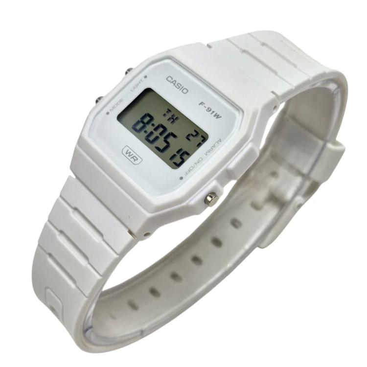 ساعت مچی کاسیو وینتیج رفرنس: CASIO-F-91WB-7ADF شناسه محصول: 4549526378454 برند: کاسیو دسته: CASIO ویژگی ها مناسب برای : اقایان و خانم ها مقاومت در برابر آب تا : صرفا کارهای روزمره منبع انرژی : باتری معمولی فرم قاب : مربع | مستطیل رنگ بدنه : سفید جنس بند : رزین نوع قفل : سگکی مشخصات اولیه وزن : 21 نوع ساعت : دیجیتال عرض (میلیمتر) : 35.2 ضخامت (میلیمتر) : 8.5 طول (میلیمتر) : 38.2 مشخصات ظاهری رنگ صفحه : خاکستری / طوسی جنس شیشه : رزین جنس بند : رزین رنگ بند : سفید مشخصات عملکردی کرنومتر : کرونومتر 1/100 ثانیه ای ظرفیت تا 1 ساعت حالتهای اندازهگیری: زمان سپری شده، زمان مقطعی و زمان های جایگاه های اول و دوم آلارم : آلارم روزانه زنگ اعلام هر ساعت ( هشدار راس ساعت) نورپردازی و رنگ نور : چراغ LED رنگ نور: سبز دسته : کاسیو