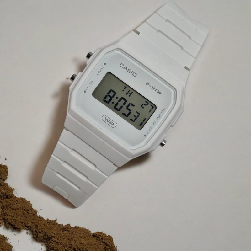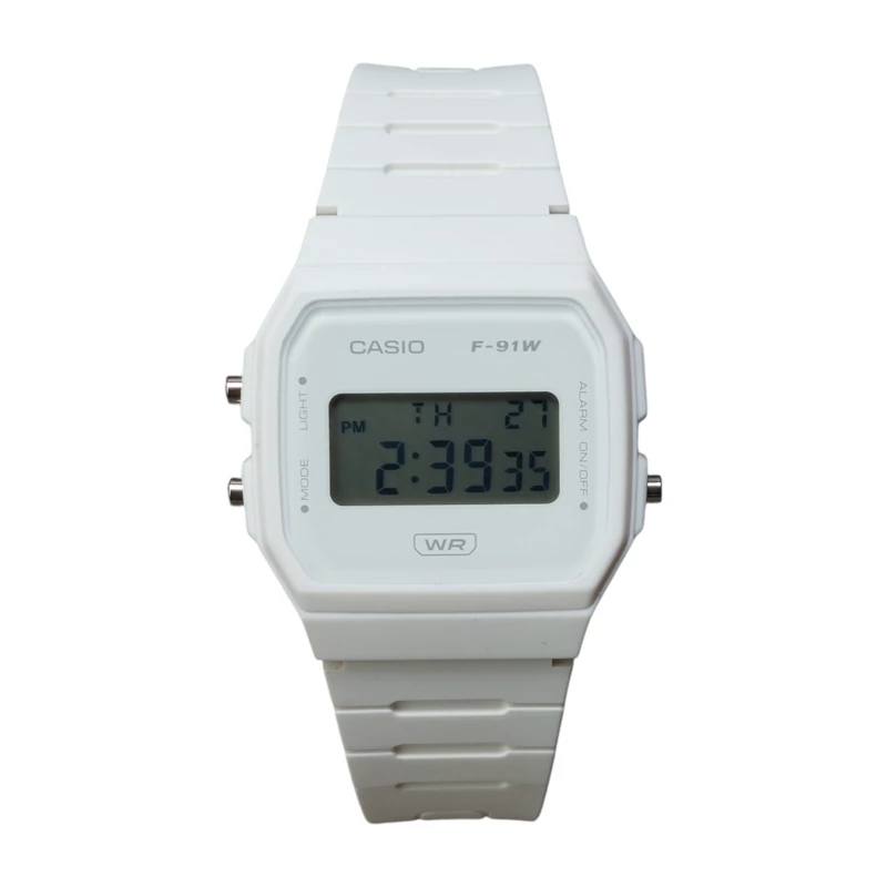 ساعت مچی کاسیو وینتیج رفرنس: CASIO-F-91WB-7ADF شناسه محصول: 4549526378454 برند: کاسیو دسته: CASIO ویژگی ها مناسب برای : اقایان و خانم ها مقاومت در برابر آب تا : صرفا کارهای روزمره منبع انرژی : باتری معمولی فرم قاب : مربع | مستطیل رنگ بدنه : سفید جنس بند : رزین نوع قفل : سگکی مشخصات اولیه وزن : 21 نوع ساعت : دیجیتال عرض (میلیمتر) : 35.2 ضخامت (میلیمتر) : 8.5 طول (میلیمتر) : 38.2 مشخصات ظاهری رنگ صفحه : خاکستری / طوسی جنس شیشه : رزین جنس بند : رزین رنگ بند : سفید مشخصات عملکردی کرنومتر : کرونومتر 1/100 ثانیه ای ظرفیت تا 1 ساعت حالتهای اندازهگیری: زمان سپری شده، زمان مقطعی و زمان های جایگاه های اول و دوم آلارم : آلارم روزانه زنگ اعلام هر ساعت ( هشدار راس ساعت) نورپردازی و رنگ نور : چراغ LED رنگ نور: سبز دسته : کاسیو