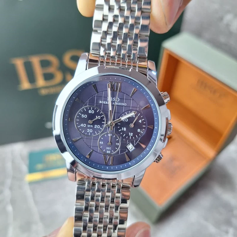 ساعت مچی مردانه ایبسو با طراحی اسپرت و صفحه سرمهای، انتخابی شیک و اصیل برای آقایانیست که به کیفیت ژاپنی، کرنوگراف فعال و استایل فشن اهمیت میدهند.💙 ⭐ مشخصات ساعت مچی مردانه ایبسو: - نوع موتور: کوارتز با ساخت ژاپن - جنس بدنه: استیل ضد زنگ با رنگ نقرهای - جنس بند: استیل با رنگ نقرهای - جنس شیشه: معدنی ضد خش - فرم صفحه: دایرهای با رنگ سرمهای - روزشمار فعال: دارد - کرنوگراف: فعال - ضدآب: مقاوم در برابر آب تا فشار 3ATM - اندازه صفحه: 40 میلیمتر - قطر بند: 2 سانتیمتر - طول بند در حالت باز: 16 سانتیمتر - نوع قفل بند: کلیپسی ضامندار - استایل: اسپرت و فشن - کشور مبدا: ژاپن - برند: IBSO - گارانتی: 24 ماهه معتبر - اقلام همراه: کاور اصلی و جعبه برند - قیمت : 5٬800٬000 تومان