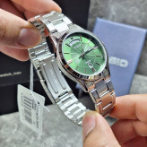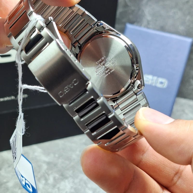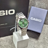 ویژگی ها مناسب برای : آقایان مقاومت در برابر آب تا : 50 متر منبع انرژی : باتری معمولی فرم قاب : گرد جنس قاب : آبکاری یونی رنگ بدنه : نقره ای جنس بند : استیل ضدزنگ نوع قفل : کلیپسی ضامندار گارانتی : 12 ماه پوزیترون مشخصات اولیه وزن : 104 مناسب برای : آقایان نوع ساعت : آنالوگ اندازه ساعت : 46.6 × 39.9 × 8.9 عرض (میلیمتر) : 39.9 ضخامت (میلیمتر) : 8.9 برند : کاسیو (CASIO) مقاومت در برابر آب تا : 50 متر منبع انرژی : باتری معمولی مشخصات ظاهری فرم قاب : گرد جنس بدنه : آبکاری یونی جنس قاب : آبکاری یونی رنگ بدنه : نقره ای رنگ صفحه : سبز ، مشکی ، سفید رنگ قاب : نقرهای جنس شیشه : معدنی ضد خش جنس بند : استیل ضدزنگ رنگ بند : نقره ای نوع قفل : کلیپسی ضامندار مشخصات عملکردی تقویم : نمایش تاریخ و روزهای هفته دقت ساعت : ±20 ثانیه در ماه